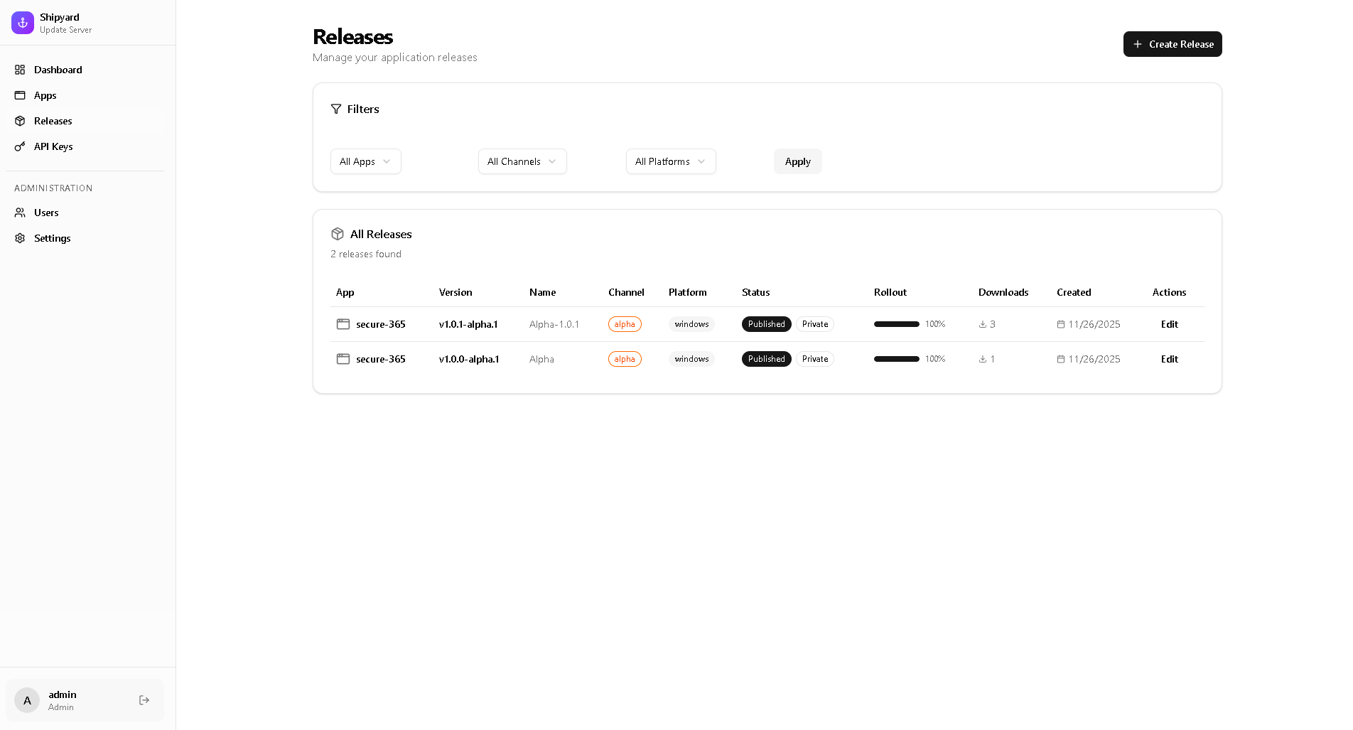 Meet Shipyard — a modern, self-hosted update server built specifically for Electron applications. It's free, open-source, and designed to give you complete control over your update pipeline.